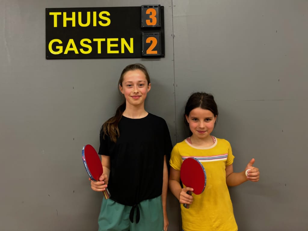 De eerste wedstrijd speelde Camille en Robin en wonnen direct met 3-2! De tweede wedstrijd speelde Camille en Mylie en ook deze wisten ze te winnen met 3-2. Wat een goede start hou dit vol dames!