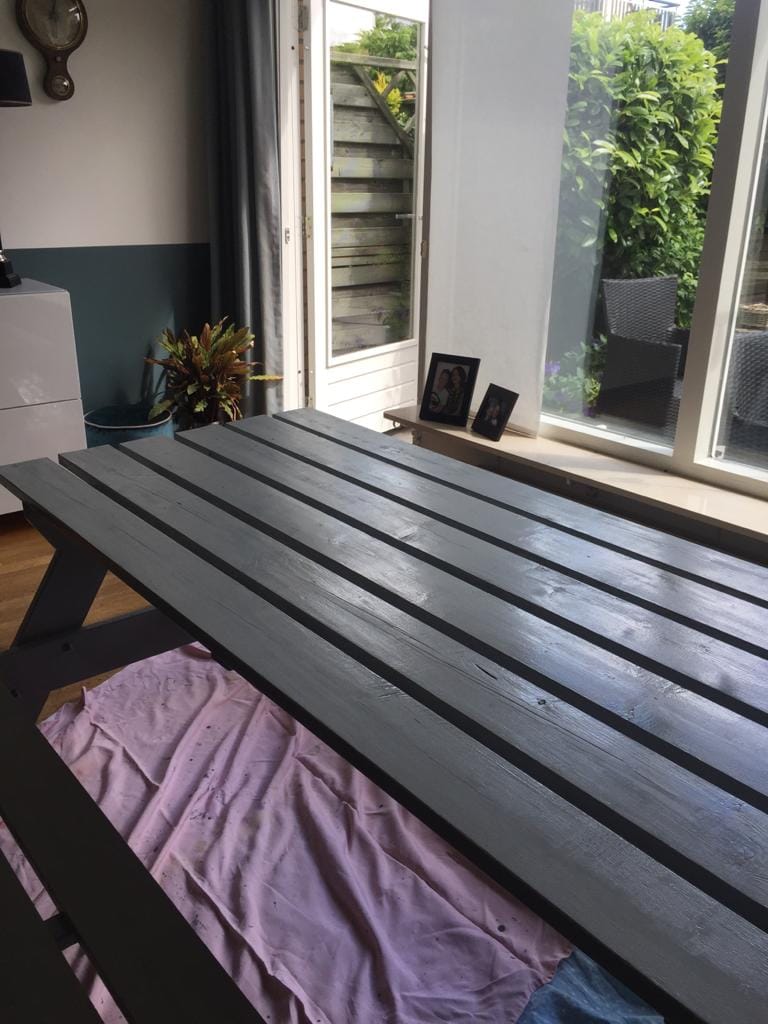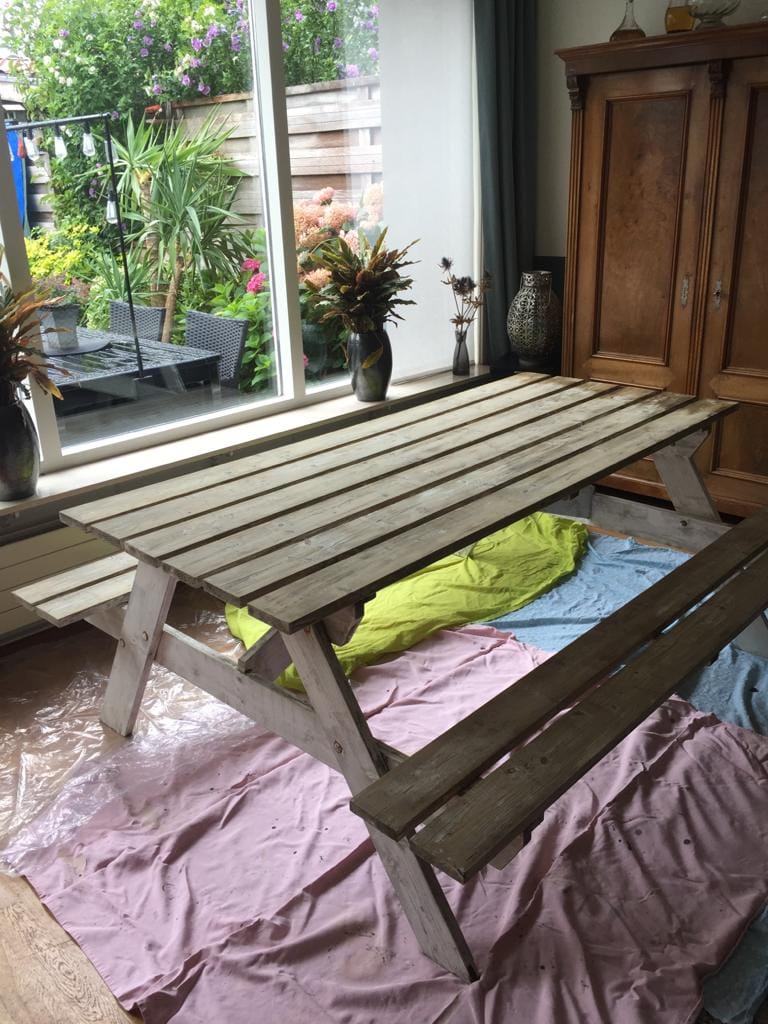 Op facebook zagen we iemand die ging verhuizen en de picknicktafel gratis weggaf omdat hij niet past bij de nieuwe tijdelijke woning.