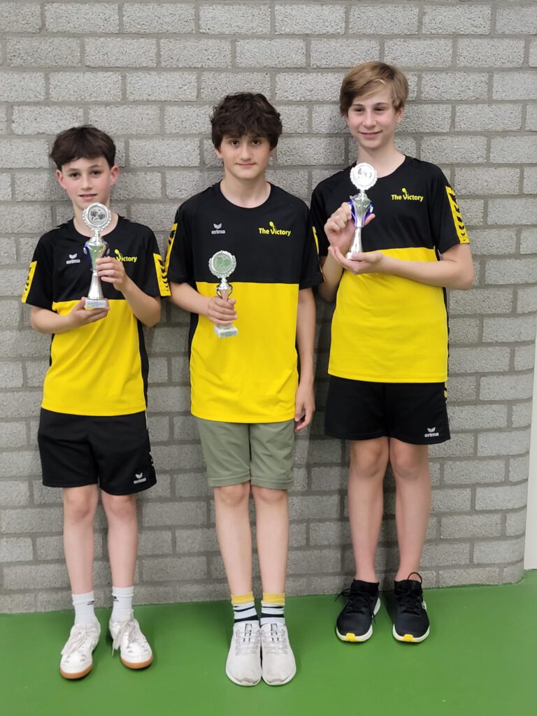 Boas is de laatste tijd lekker aan het spelen en beweegt beter achter de tafel. Wellicht komt dit ook door dat hij nu een turbo snel batje heeft gekocht 🙂 Super veel tegenstand had Boas niet want hij verloor geen game en werd zo doende 1ste!