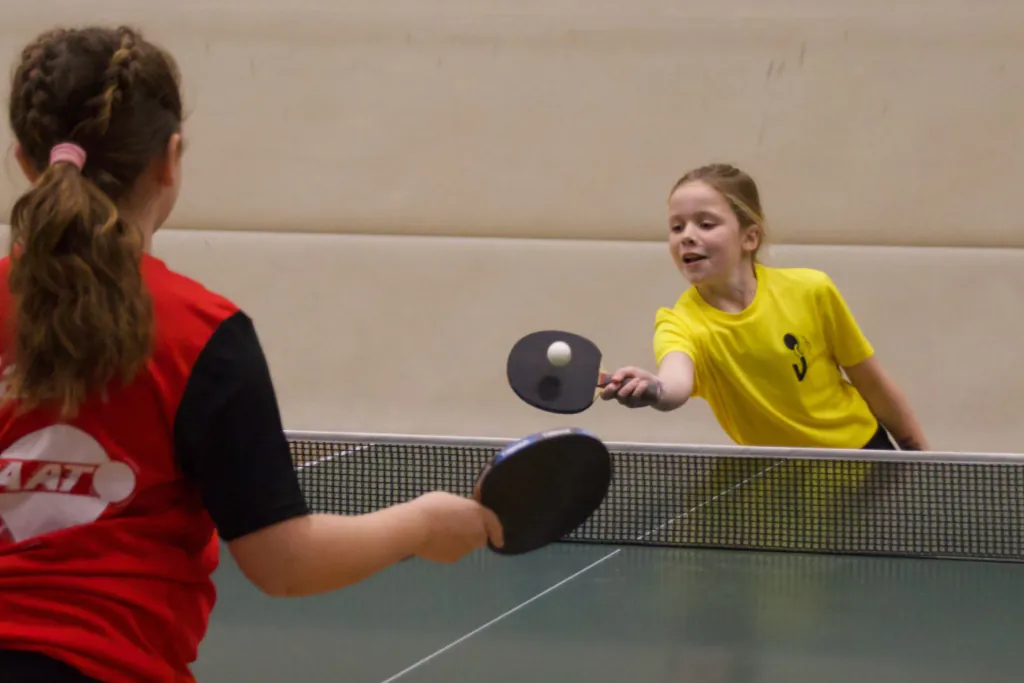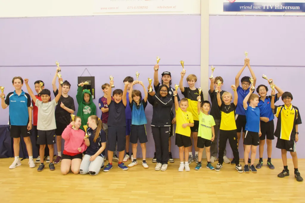 Zondag stond weer een mooi toernooi op de agenda namelijk de mini-meerkampen. Deze keer gehouden bij tafeltennisvereniging Hilversum en mede georganiseerd door Patrick de vader van Damian die bij ons in team 1 speelt. We hadden een grote delegatie mee namelijk 9 kids te weten: Boas, Julius, Robin, Finn, Lora, Eskjill, Evelien, Luca en Enaya. Er waren 2 zalen dus het was een beetje schipperen voor de begeleiders om alles in de gaten te houden en te coachen waar mogelijk.