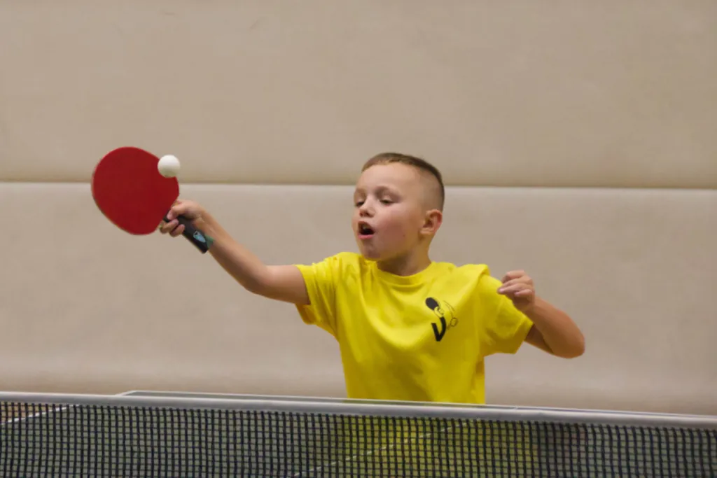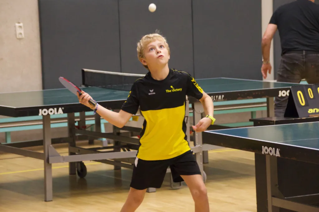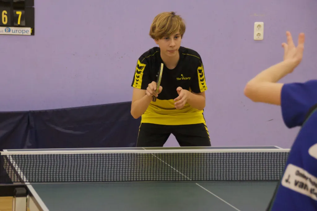 Weer een tafel ernaast speelde Eskjill waarvoor het ook het eerste toernooi was. Beetje gespannen begon hij er aan maar als snel maakte hij vriendjes en maakten ze vooral veel lol tijdens de wedstrijden. Hij verloor twee wedstrijden in 5-en maar volgens mij was het toch een geslaagd toernooi voor hem.