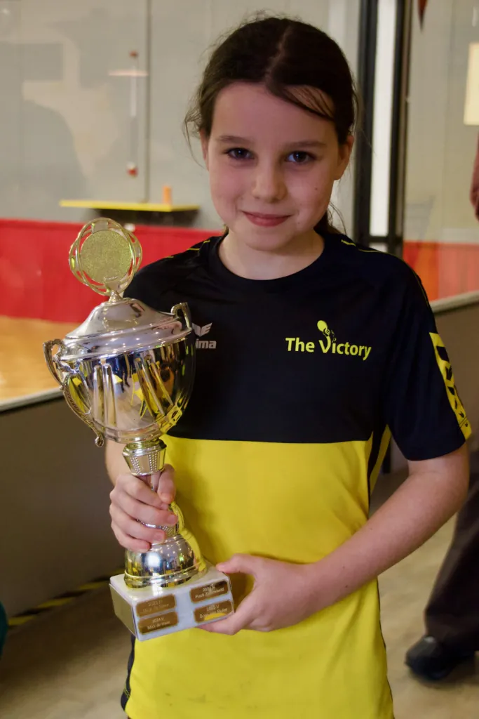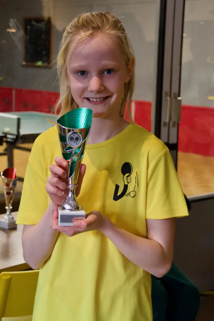 De finale deze keer ging anders, want Ruben pakte de eerste game met 13-11, maar de volgende game ging naar Reijn met 12-14. Lekker spannende games allemaal! De daaropvolgende games waren iets ruimer met 11-6 en 7-11. Wederom een 5-setter in de finale, en wat voor één! Ruben moest vier matchpoints wegpoetsen, waarvan zelfs één met een randbal. Uiteindelijk was het een thriller van een laatste game die maar liefst met 19-17 werd gewonnen door Ruben, die zo voor de 3e keer jeugdclubkampioen werd.