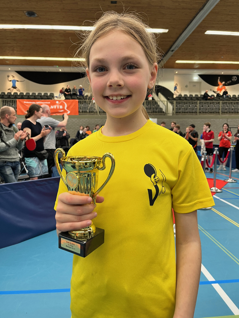Sara is haar moeder achterna gegaan en heeft het Nederlands Jeugdkampioenschap tafeltennis meisjes onder 11 jaar gewonnen! Net zoals haar moeder Lea maar dan 30 jaar geleden.