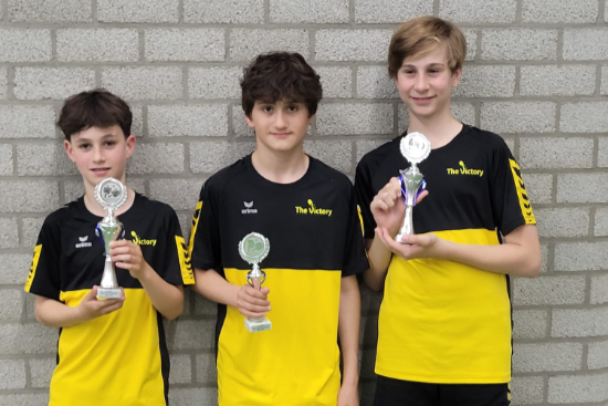 Boas is de laatste tijd lekker aan het spelen en beweegt beter achter de tafel. Wellicht komt dit ook door dat hij nu een turbo snel batje heeft gekocht 🙂 Super veel tegenstand had Boas niet want hij verloor geen game en werd zo doende 1ste!